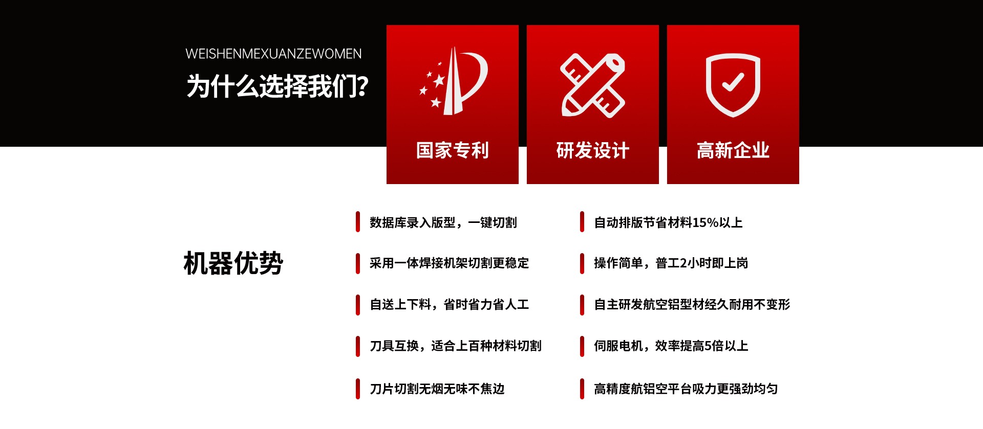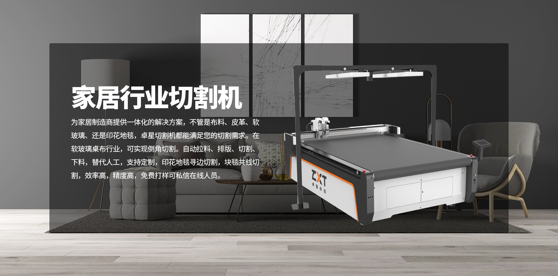 采用可更換工具模式,工具頭非固定焊接集成,可按實際工作需要以及業(yè)務(wù)范圍擴展情況方便的更換、增配不同功能的工具頭;適應(yīng)家居行業(yè)材料多樣化的切割要求;為應(yīng)對客戶實際使用中電磁環(huán)境復(fù)雜,特別配置抗干擾操作屏,工作時不受周邊電子環(huán)境影響,不花屏;